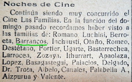 En nota del diario El Orden de Mercedes de fecha 15/09/1908, se da cuenta de la existencia de una fotografía en el último número de la REVISTA CARAS Y CARETAS, en la que aparece un joven OVIDIO BARRANCOS, con motivo de una reunión familiar realizada en Chivilcoy: